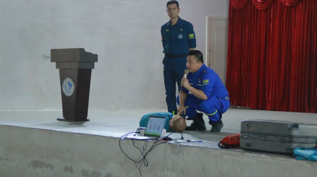 在应急知识宣传环节,李老师更是化身“实践导师”,详细介绍了溺水时的自救方法,如保持冷静、仰漂等待救援等;同时,针对发现他人溺水的情况,他强调 “智慧救援” 的重要性,教授大家利用竹竿、绳索等工具施救,以及拨打急救电话的正确方式。此外,李老师还现场演示了心肺复苏术的操作流程,包括胸外按压的位置、频率和深度,人工呼吸的要点等。在互动体验环节,同学们纷纷踊跃上前,在李老师的指导下进行实践操作,将理论知识转化为实际技能。