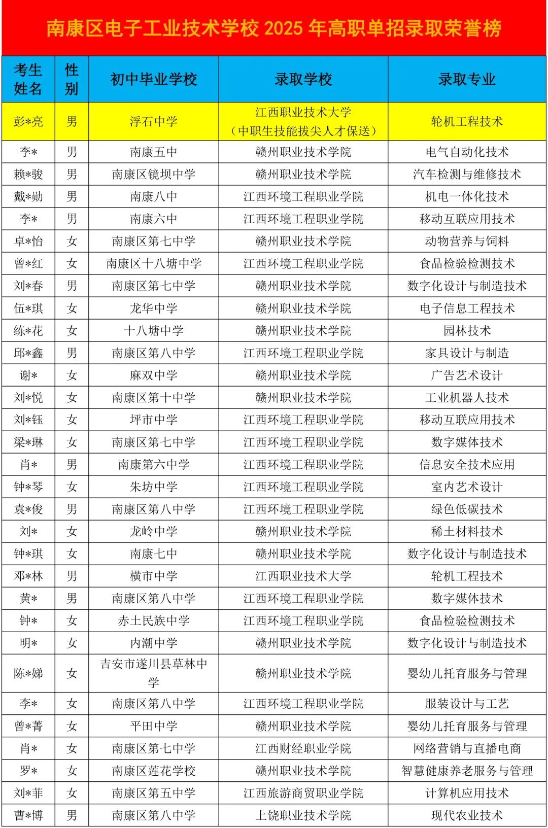 在2025年高职院校单独招生考试中,南康区电子工业技术学校以优异成绩再创历史新高!谨向蟾宫折桂的莘莘学子致以最热烈的祝贺!你们以笔为戈挥洒汗水,以梦为马奋力拼搏,终在青春赛道上跑出了闪耀风采!同时向全体教职员工致以最诚挚的感谢!正是你们的凝心聚力、倾情奉献,用日夜坚守铺就成才之路,以匠心育人浇灌梦想之花,共同铸就了这份令人振奋的辉煌答卷!新程已启,让我们继续携手并肩,扬帆起航再攀高峰,共同谱写职业教育高质量发展的崭新篇章!